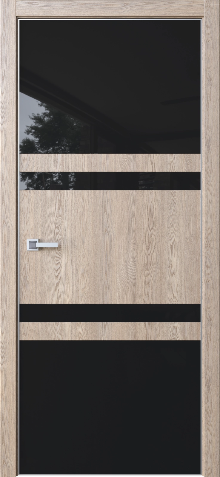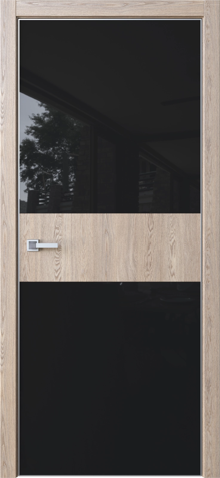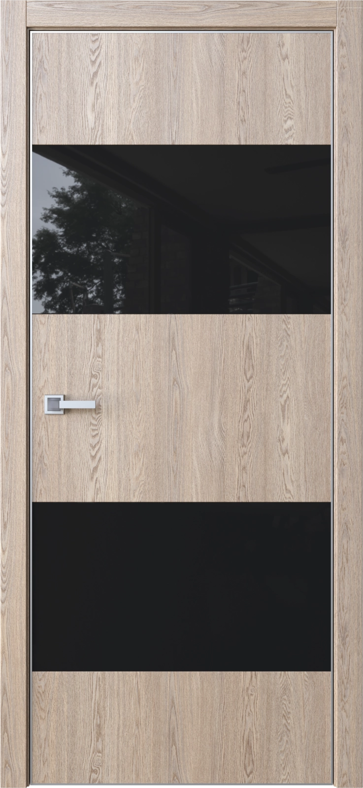 Стеклянные вставки (лакобель или зеркало) создают визуальную глубину и подчёркивают структуру полотна.